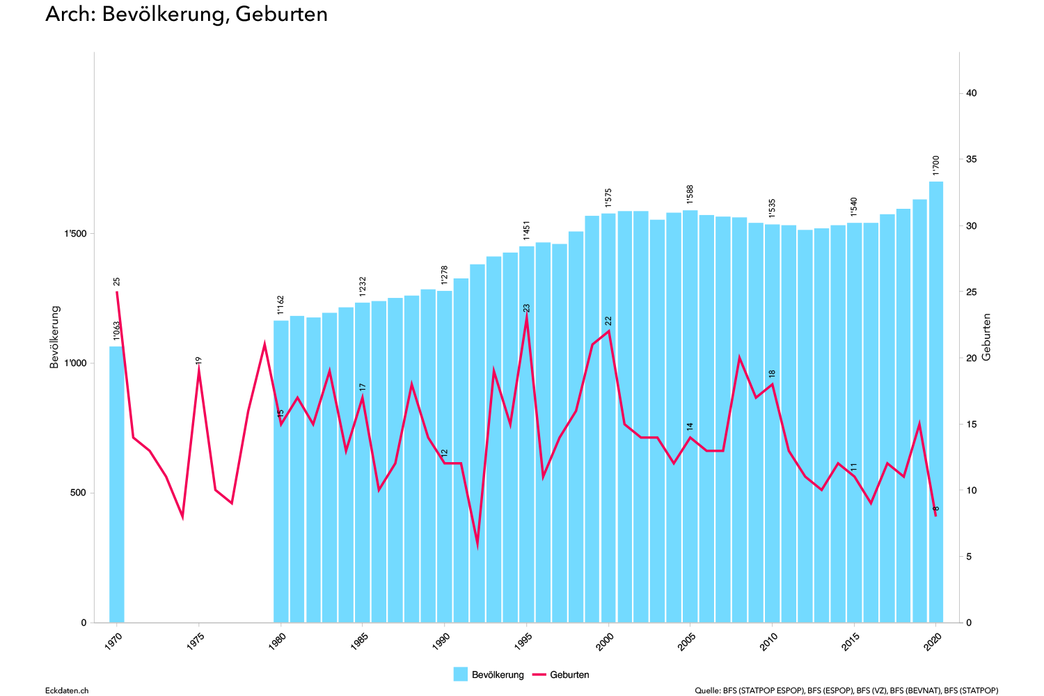 Schüler*innen- und Klassenprognose 2020-2035 Arch BE und Zuliefergemeinden Sekundarstufe I erstellt durch Basler & Hofmann AG mit der Eckdaten Datenbank und App